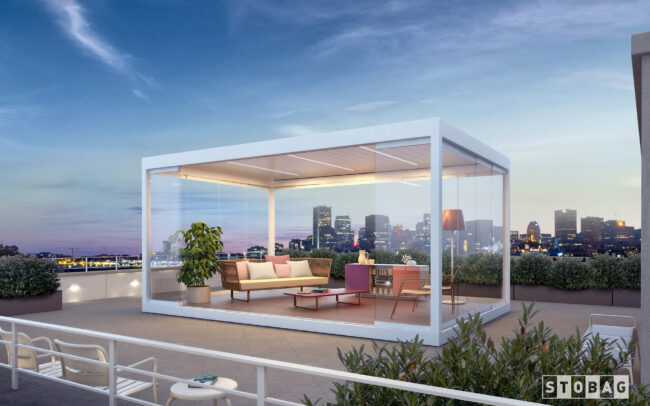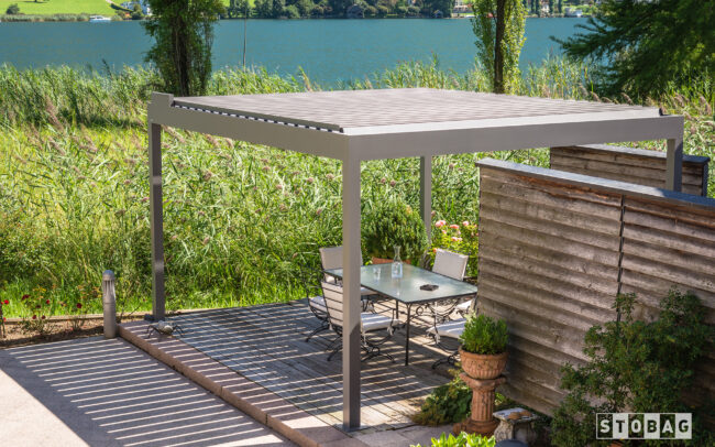Pergola Bavona är ett stabilt och stilfullt uterum för dig som gillar smarta lösningar. Paviljongen går att montera helt fristående eller mot en vägg. Det går också att enbart välja Bavona lamelltak om du har en befintlig konstruktion du vill uppdatera. Bavonas tak har väderbeständiga motordrivna lameller som kan justeras i upp till 110 grader och en inbyggd limatiseringseffekt som ger en naturlig luftcirkulation. Konstruktionen ger dig möjlighet att anpassa väggar, glaspartier och skjutdörrspartier helt enligt dina önskemål. Modellen kan också seriekopplas för att täcka större ytor. Dessutom innefattar designen smarta detaljer som dolda infästningar och elektronik som dragits inuti konstruktionen.